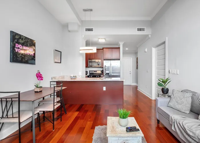 Das 1-Zimmer-Nice 1Br Luxury Flat - Pool & Gym Philadelphia liegt in unmittelbarer Nähe von verschiedenen Sehenswürdigkeiten der Gegend: New Liberty befindet sich unter anderem 7 Fußminuten von hier entfernt. Dieses Apartment bietet eine Terrasse und liegt 600 m von den Liberty Lands.